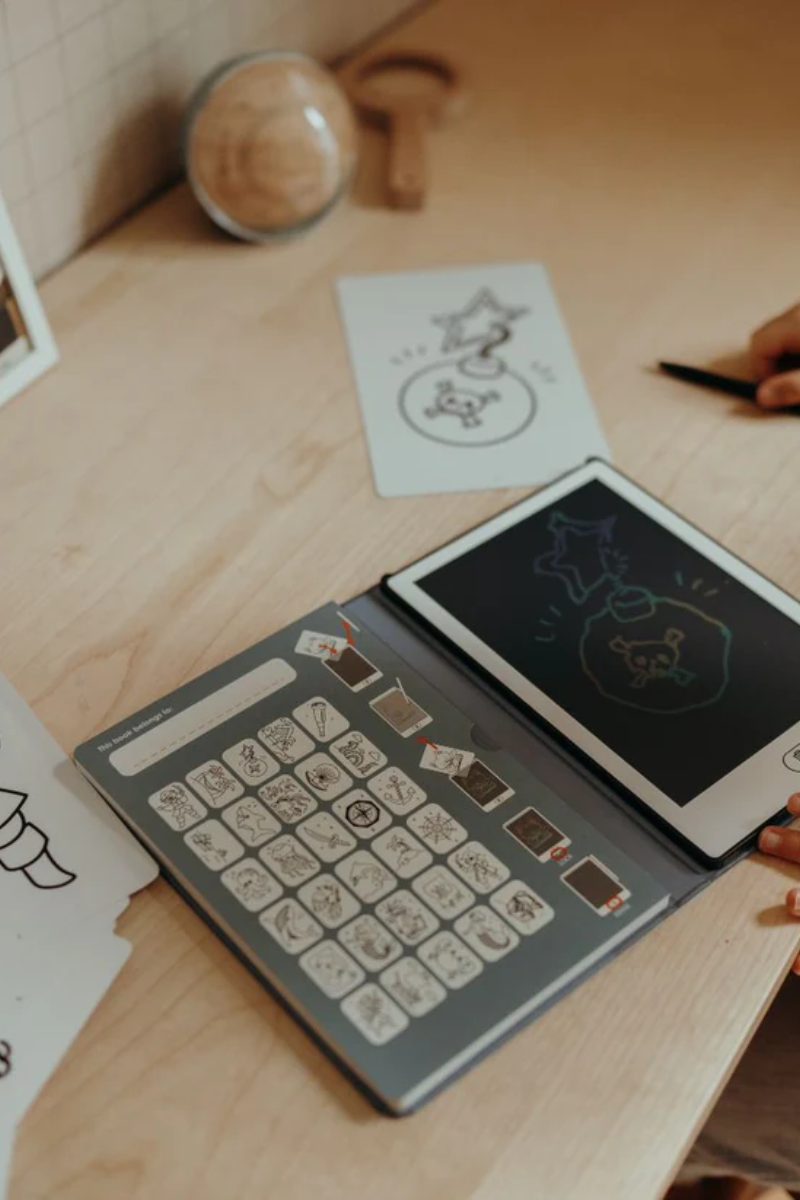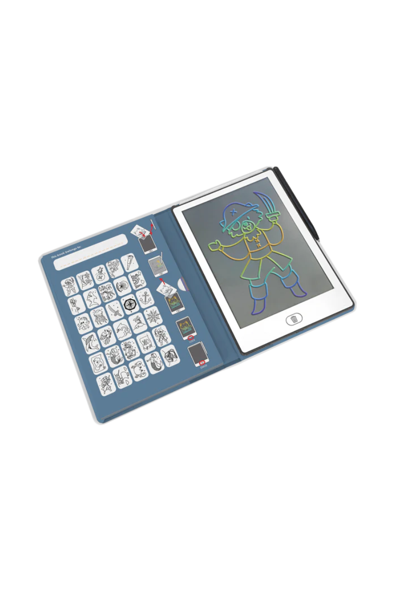 Offrez à votre enfant une expérience de dessin sans limite avec la tablette de chez Kidywolf. Un livre à dessins avec écran LCD, proposant 30 illustrations à décalquer sur le thème des pirates.