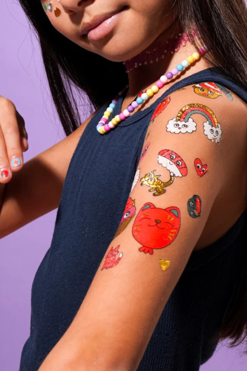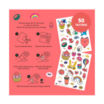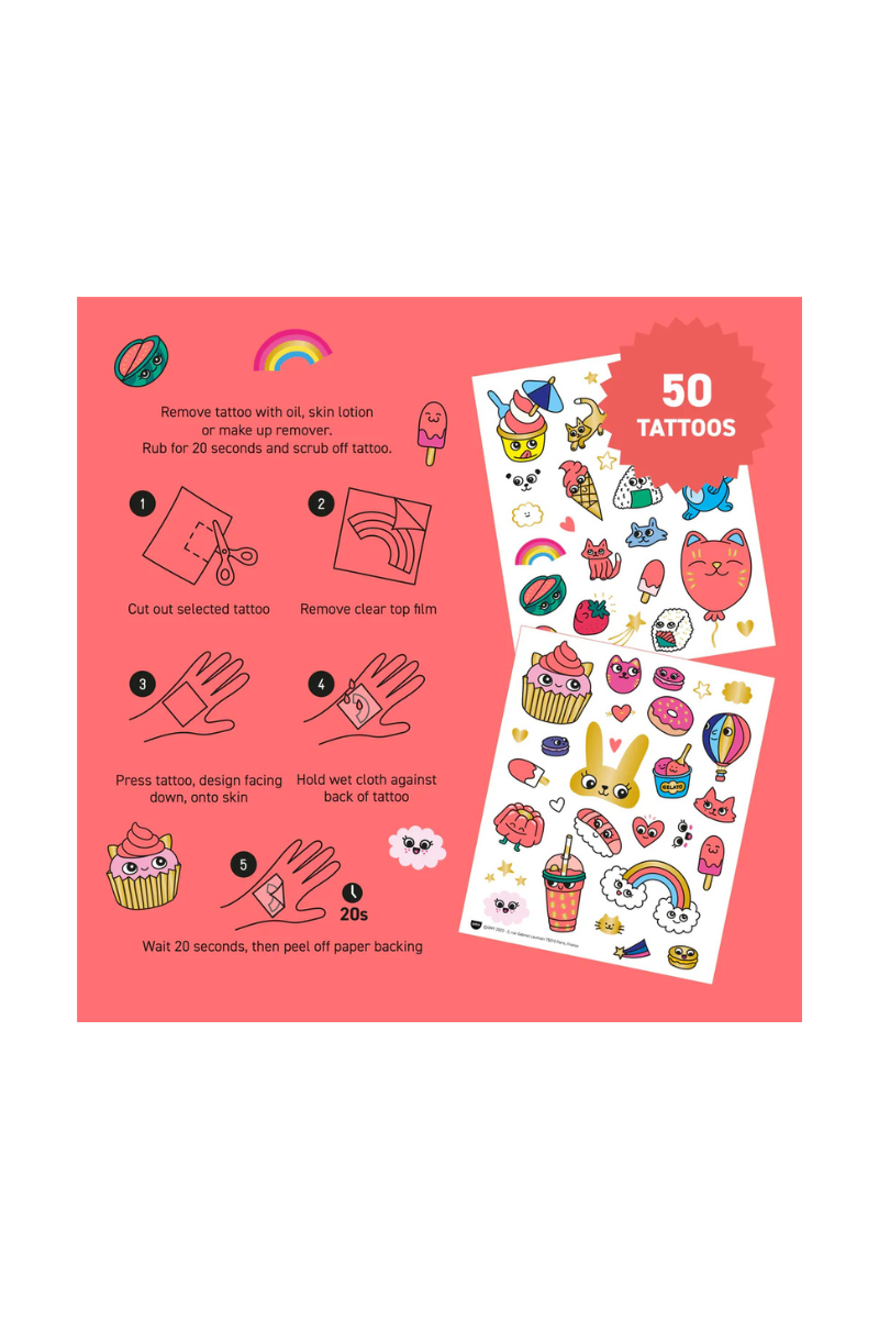 Découvrez à l'intérieur de cette pochette, 50 tatouages temporaires fluo, dorés et colorés à se coller partout toute l'année. En plus d'être simple à utiliser, les tatouages sont résistants et testés dermatologiquement.