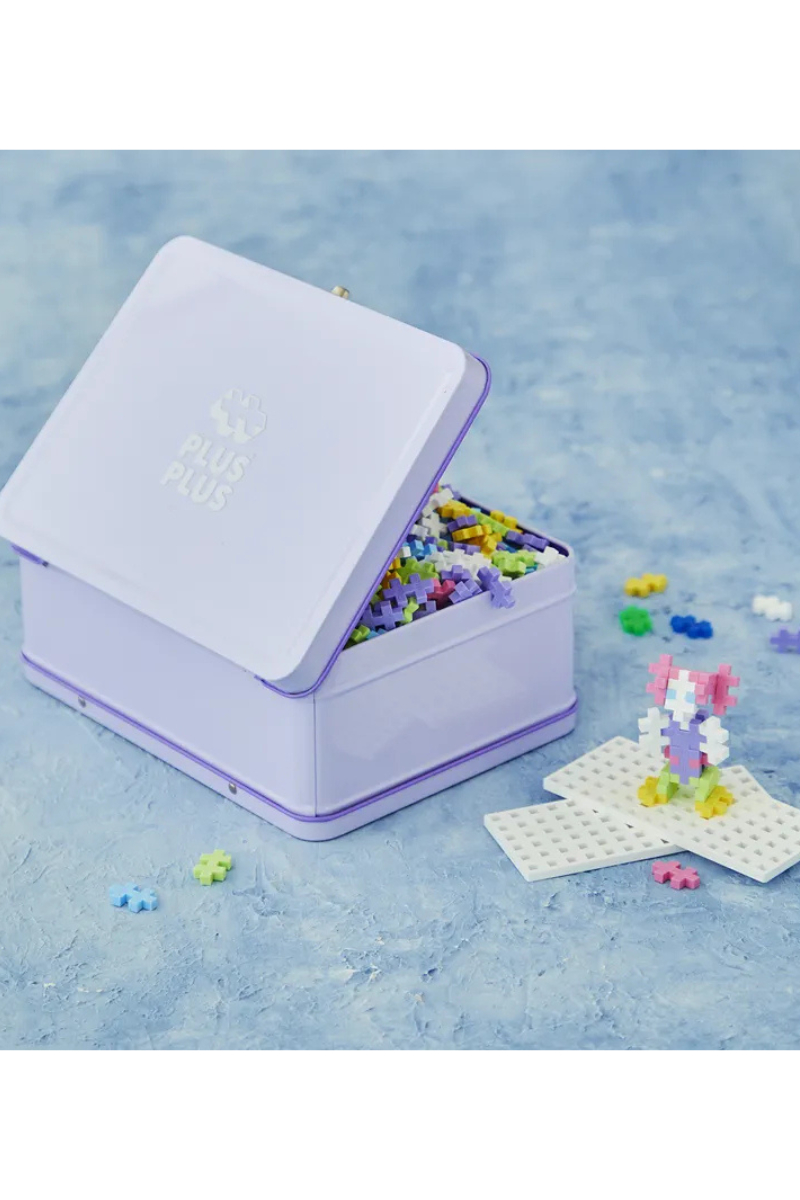 Ce kit de construction contient 600 pièces Plus-Plus Classic (500 couleur pastel et 100 pièces couleur néon - 20mm), deux bases de construction blanches et un livret de modèles pour guider les premières créations. Les enfants peuvent construire des licornes, des princesses, des personnages, des maisons ou laisser libre cours à leur imagination pour inventer leurs propres aventures. La valisette en métal mauve avec sa poignée pratique permet de transporter et ranger facilement le jeu de construction partout.