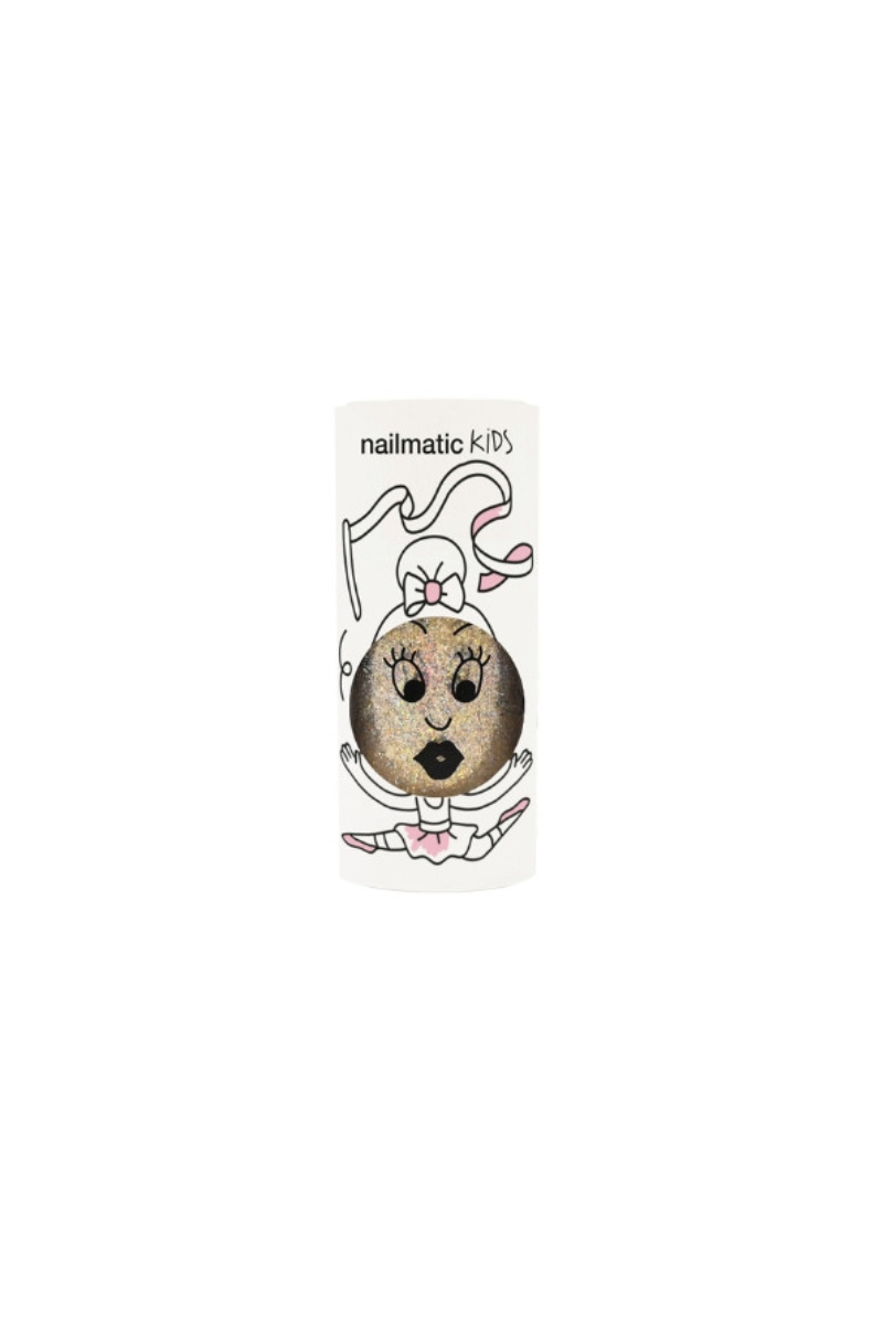 Le vernis "Aurora" de Nailmatic illumine les petites mains d’un doré scintillant, parfait pour les fêtes, les anniversaires ou juste pour faire comme les grands !